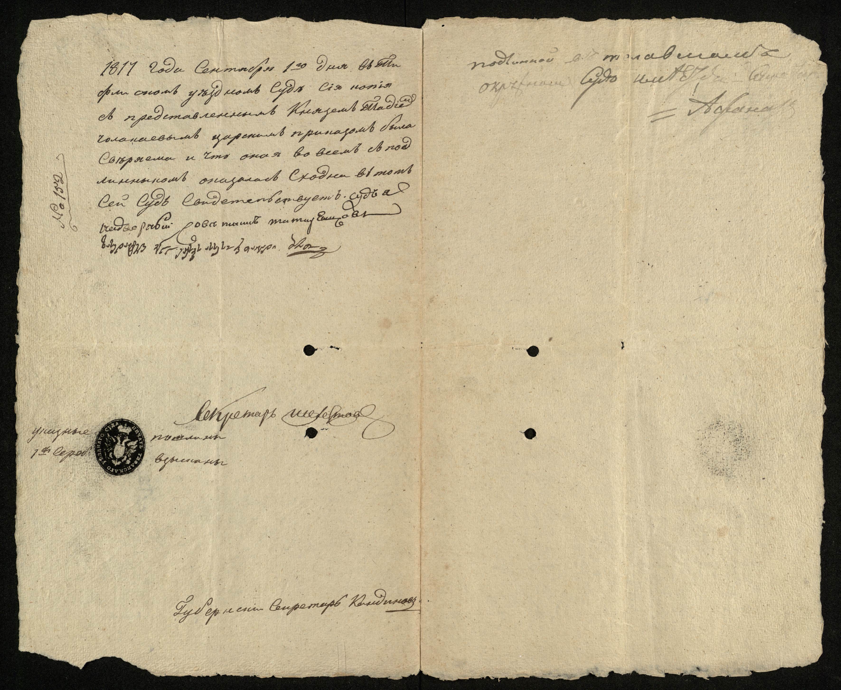 1. რეგისტრირებულია რუსეთის ადმინისტრაციის მიერ 1817 წ. 1 სექტემბერს, სოვეტნიკი გაბრიელ რატიევი.