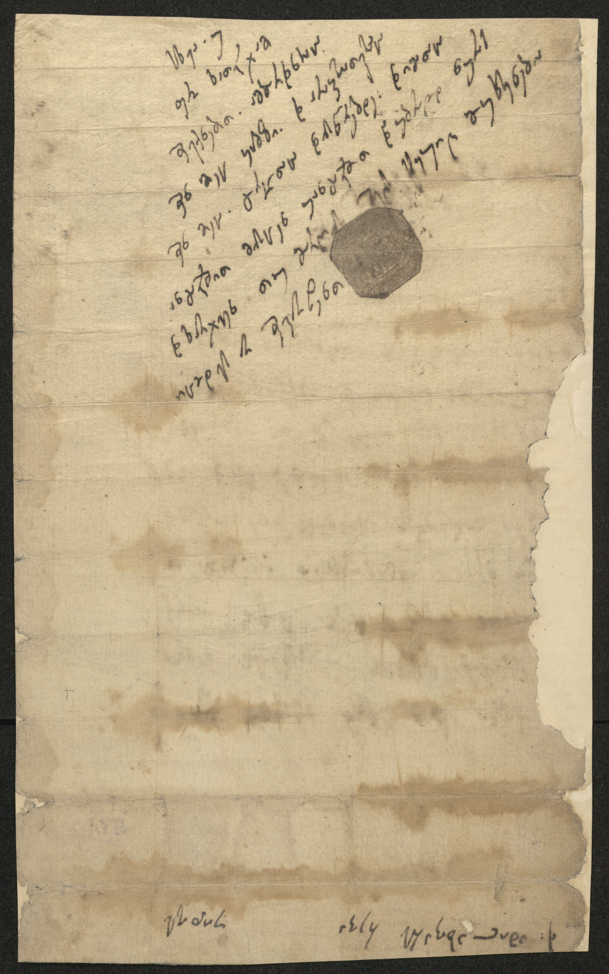 ჭვირნიშნიანი ქაღალდი ყვითელი, დაწერილი ყავისფერი მელნით