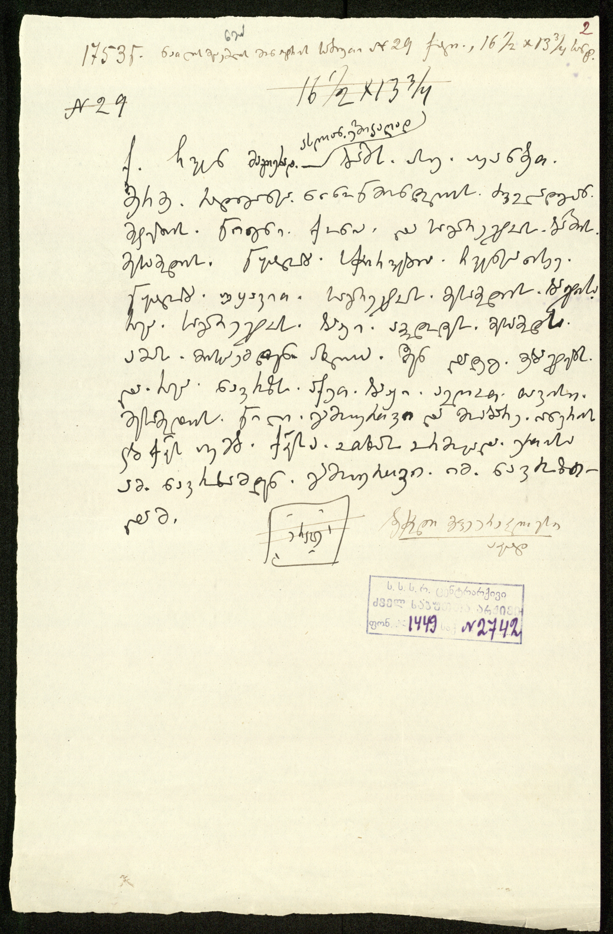 2. დედნის სარგის კაკაბაძისეული აღწერა: ,,1753 წ. ნათლისმცემლის მონასტრის საბუთი 29, ქაღ., 161/2 x133/4 სანტ.“.