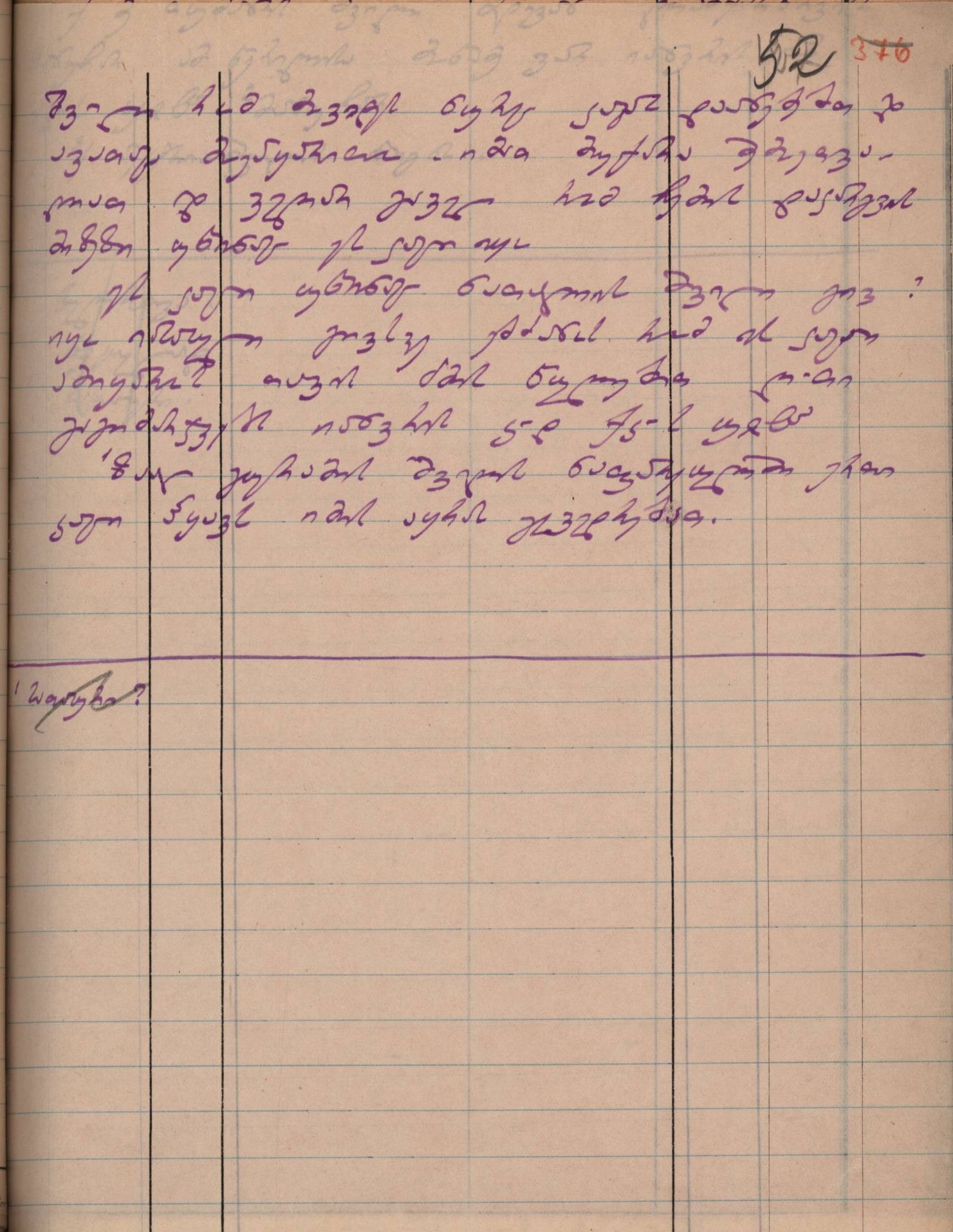 ქაღალდი თეთრი, შავი ჰორიზონტალური ხაზებით, დაწერილი ლურჯი მელნით